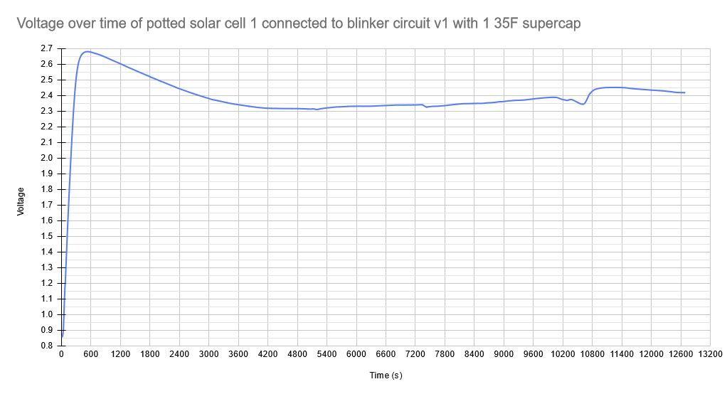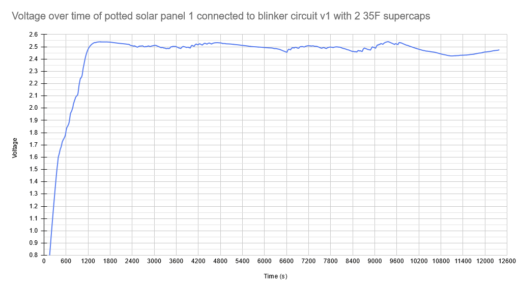 I built a new blinker with two 35F supercaps attached and ran another test.