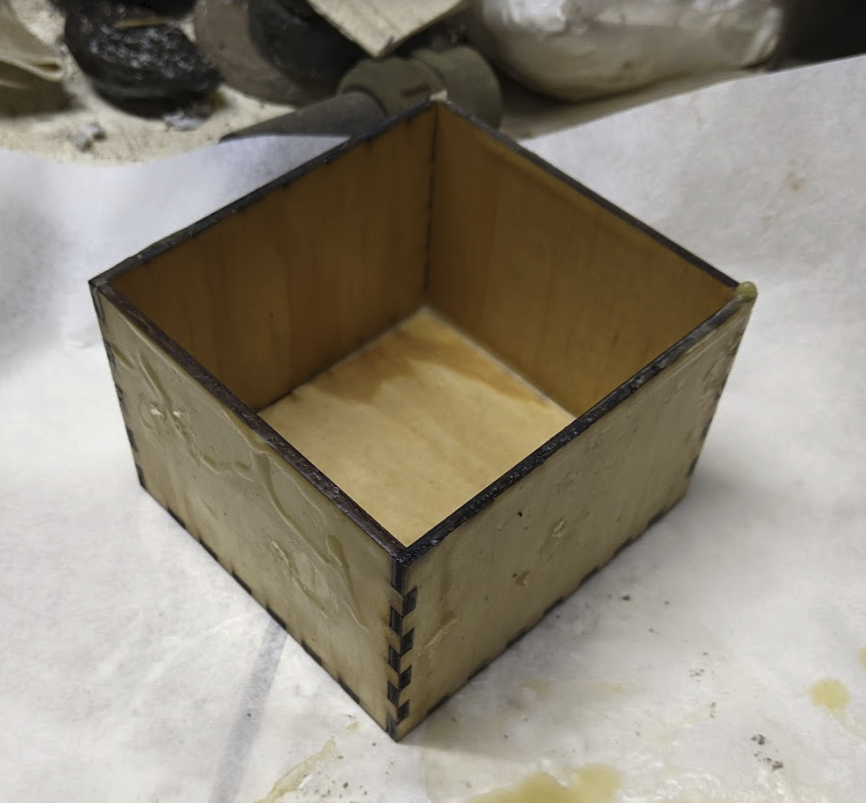 I cut out a cardboard box on the laser cutter and lined it with gladwrap.