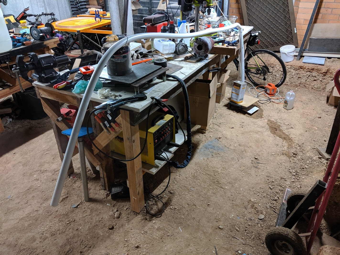 I read that PVC started to get soft at 120°C, so I built my steamer out of 40mm plumbing PVC tubing, some elbows I had leftover from another project, an electric frypan and some MDF.
