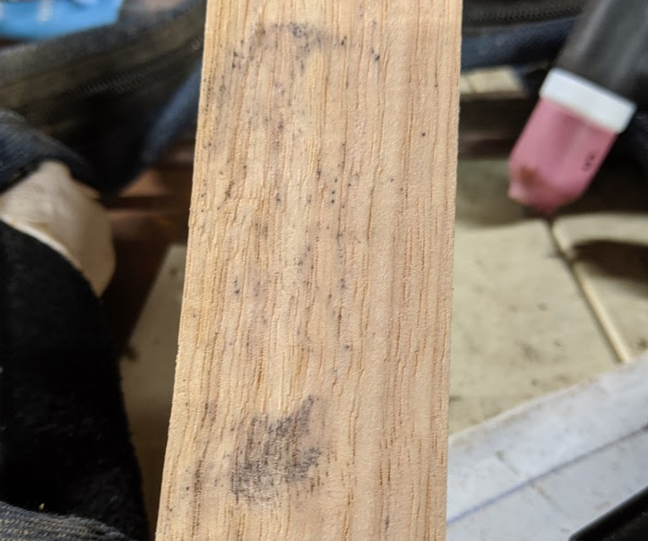 Oddly after the steaming I noticed a few spots of what appeared to be black mould growing on the wood. I don't know if this is actually mould, it would've had to have grown very quickly. I suspect it might be blobs of tar in the wood that spread out when it got hot. I'll see how it sands.