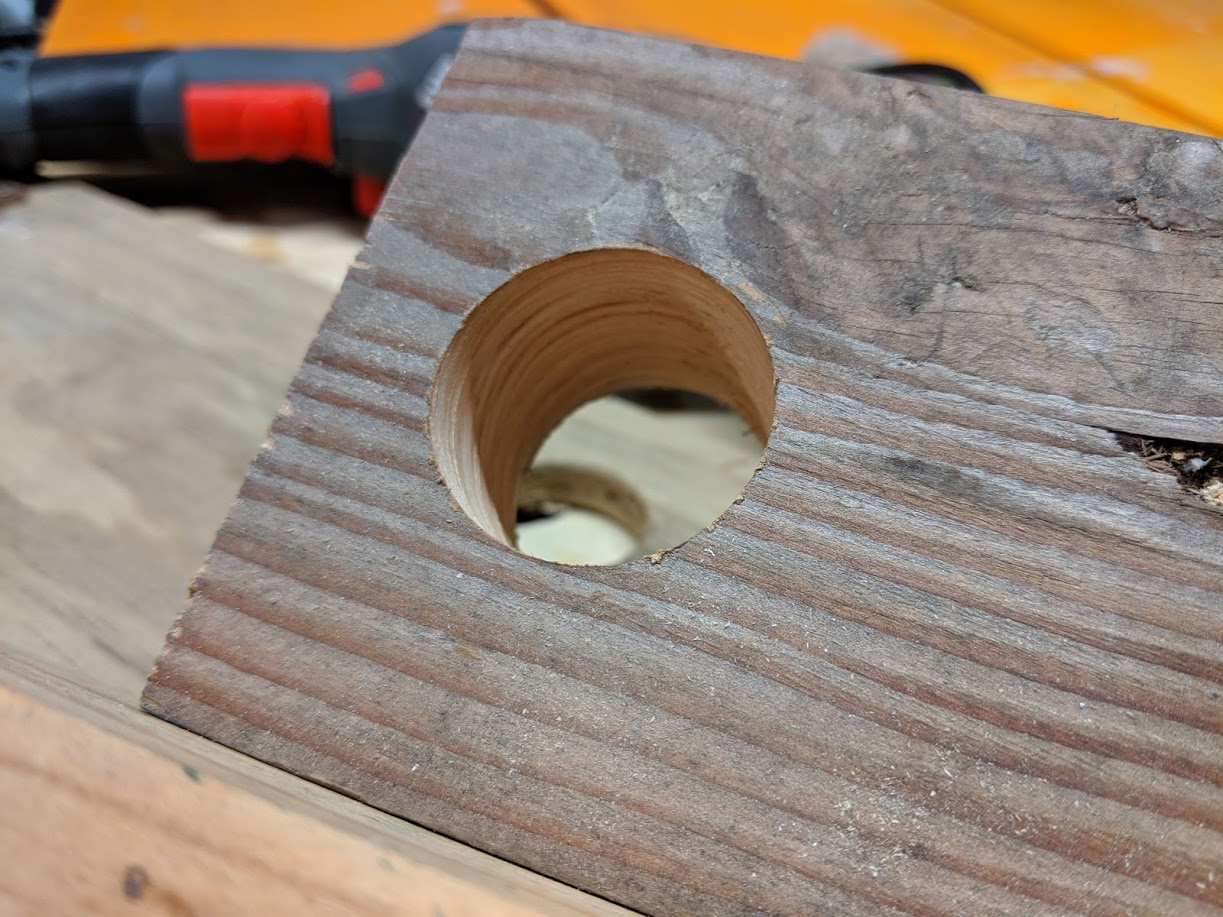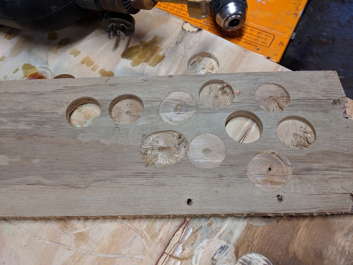I need to cut a 1-3/8“ (35mm) hole in the centre of the top board. This is scary. I bought a set of rubbish forstner bits and was very disappointed in their performance.