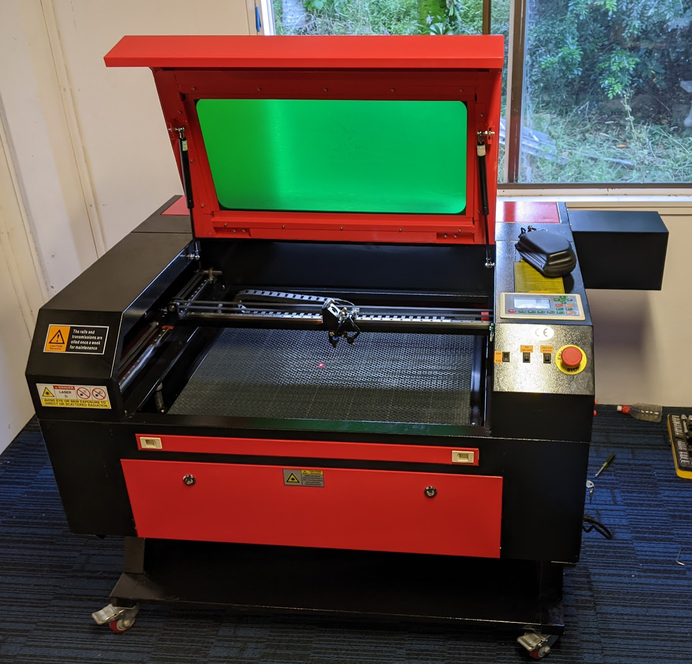 I went for an 80W model to give me some headroom for cutting different materials. This model comes with a 700x500mm bed, air assist, (non-coaxial) red dot, motorised bed height and exhaust extraction. The only feature it doesn't have that would be nice is a coaxial red dot, but that's not a show-stopper.