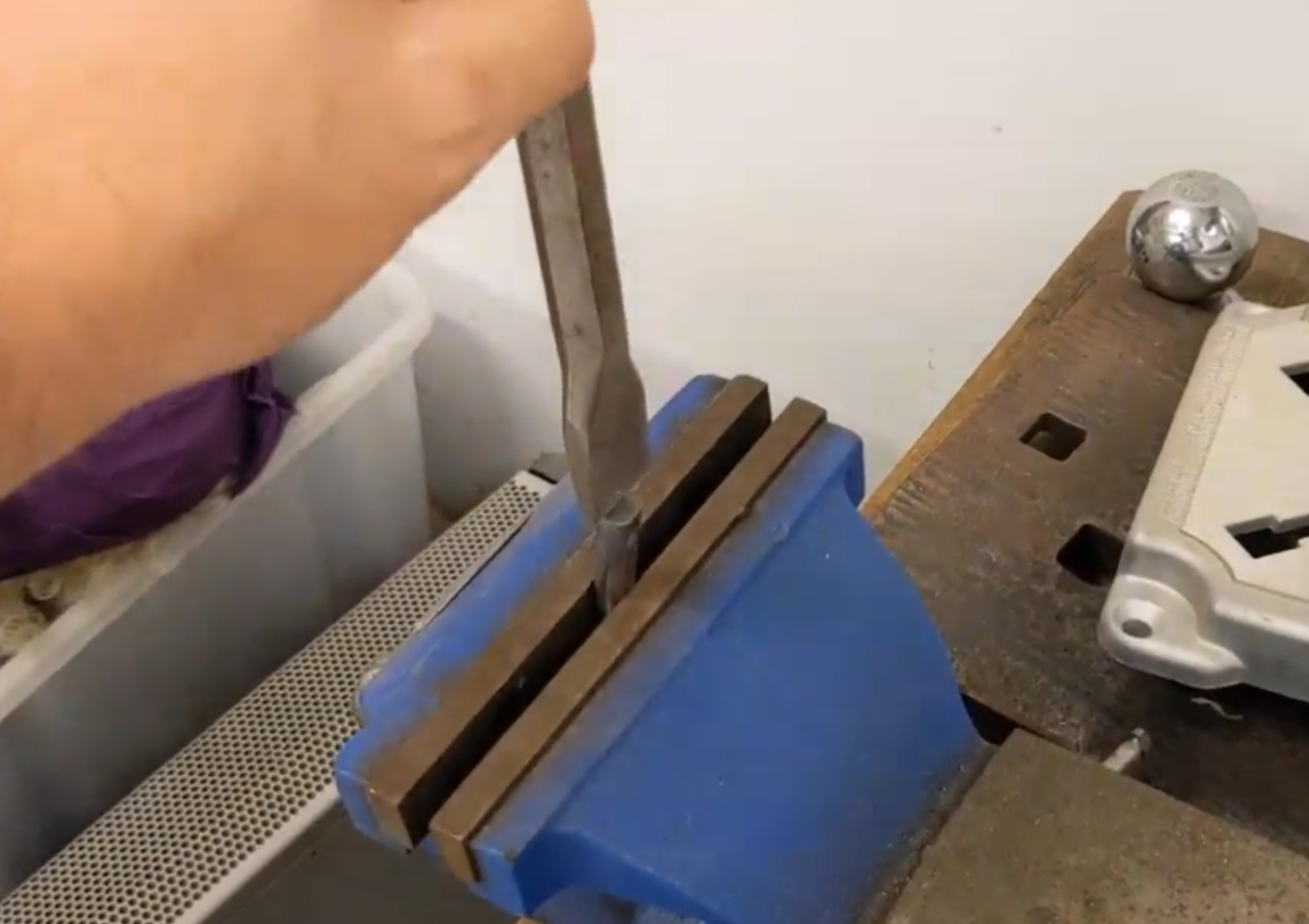 Then he put it in a vice and gave it some hefty donks with a hammer.